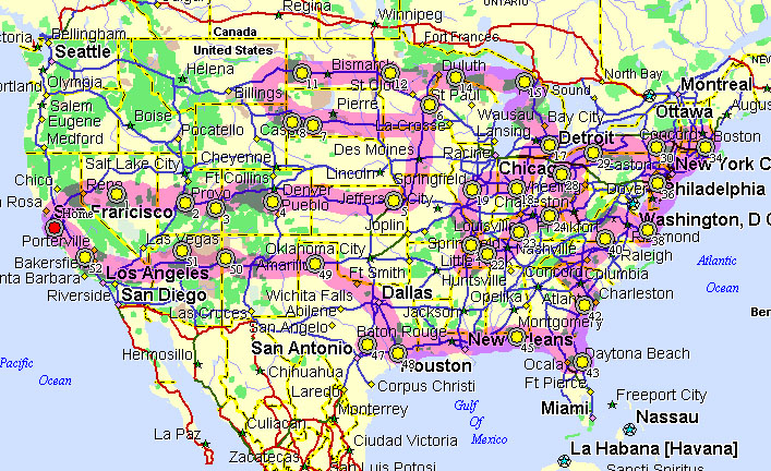 The plan is (as of the time of this writing) to leave the San Francisco Bay Area in early September, and drive around seeing the sites through Halloween or so. In the middle of all of this is a week in Topeka, KS, where I go every September to the SCCA Solo II National Championships. This is an autocross event. See this old page for some of my autocross exploits. Suffice it to say here that this is my 10th time competing in the Nationals. I won once, back in '96. I hope I can do it again. Between Nationals and mid-October, I'll wind my way around the country, ending up in Philadelphia, where my brother is getting married. After the wedding, it's back home (slowly).