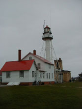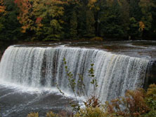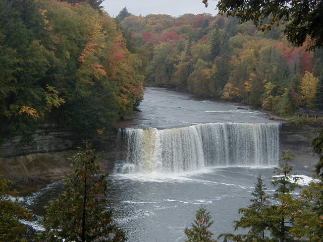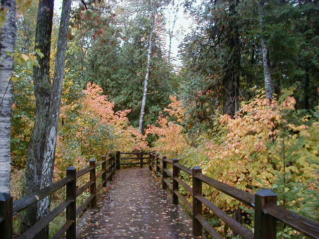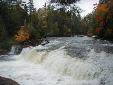 But I wasn't gonna let that stop me ... I may as well go check out the sights anyway. So, I headed out in the BMW for Tahquamenon Falls, the prime tourist spot around here. First, the upper falls. On the half-mile hike out to the falls, through the woods, I was getting mighty wet and wished that I'd remembered to wear some boots instead of my sneakers. Oh well, they'll dry eventually. During the walk out there, a little forest creature went running across the trail right in front of me. It looked like a ferret. But it disappeared into the woods and so I didn't really get a close look. Later, I found a ranger and asked, and he said it was most likely a pine marten, whatever that is. Well, let me tell you, a pine marten looks like a ferret. Anyway, I made it out to the falls and it was gorgeous. Sure would have been nicer if the sun had been shining, but as you can see from the pictures, it's still a nice place. The falls themselves pale in comparison to (say) Niagara, but the surrounding scenery is much nicer. I got a few pictures from various spots along the river's edge, then headed back to the car and drove down to the lower falls. These are much less impressive, they basically looked like some rapids on the California rivers. I was hard pressed to call them waterfalls. But they'd built these really nice boardwalk paths out to various viewing spots, and the hike itself was great. Lots of wildlife, and I didn't get nearly as wet and dirty as I did heading out to the upper falls. Still, hiking a total of about 2 miles in the pouring rain was questionably smart. Now that I was thoroughly drenched, I decided to go try to find something indoors. There is a shipwreck museum up at Whitefish Point, which apparently is famous for lots of shipwrecks, including the Edmund Fitzgerald (you know that song by Gordon Lightfoot, right?) A museum seemed like just the ticket for a day like today, so I headed out that way. The museum is actually pretty small but it was absolutely packed, probably because there just aren't that many indoor activities in this area. They tell the stories of a number of local shipwrecks for the last 100+ years out in the Great Lakes, and show a film about the Edmund Fitzgerald. The museum is on the grounds of the Whitefish Point Lighthouse. It's an active coast guard lighthouse, so you can't go up into the tower, but I enjoyed the visit anyway. I thought about breaking camp and heading out, maybe to Canada, but it was after 4pm by the time I got back to the campsite, so I'll just spend the night here, do some laundry, and head out in the morning. I'll probably just head to the southern peninsula and blow off Canada (hey, I've been there), but we'll see how I feel in the morning ... |